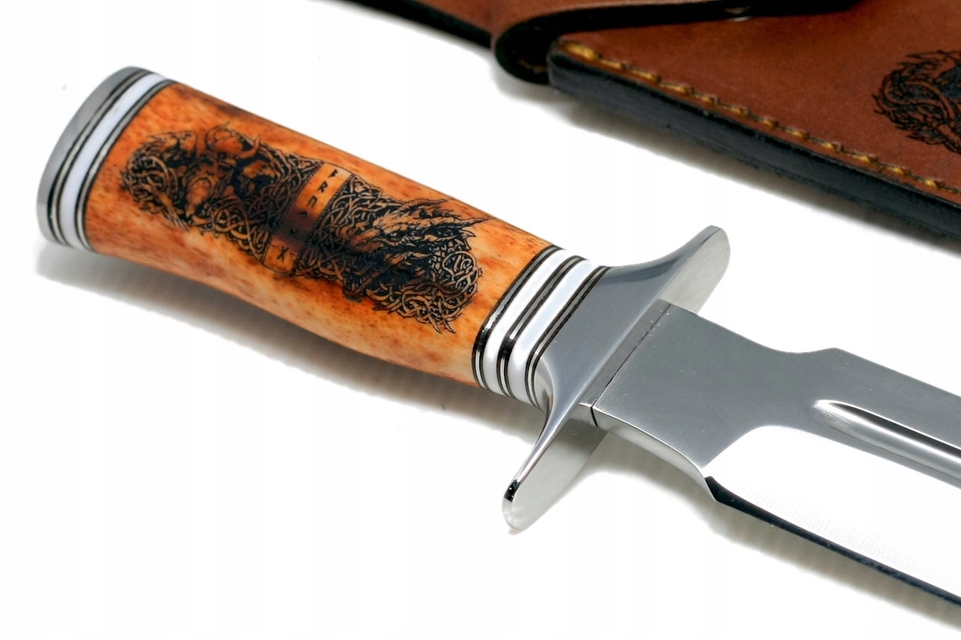 Ostrze zostało poddane doskonałej obróbce cieplnej dzięki czemu bardzo dobrze trzyma krawędź / ostrość. Głownia ma fantastyczne ręczne szlifowanie po obu stronach. Twardy jak skała i wspaniały uchwyt wykonany został z kości wielbłąda sprawia iż nóż świetnie trzyma się w dłoni.