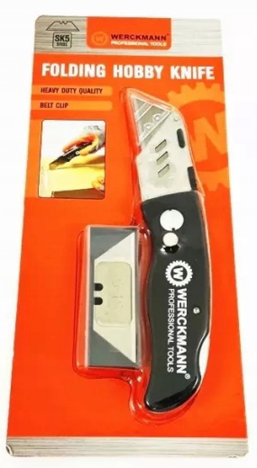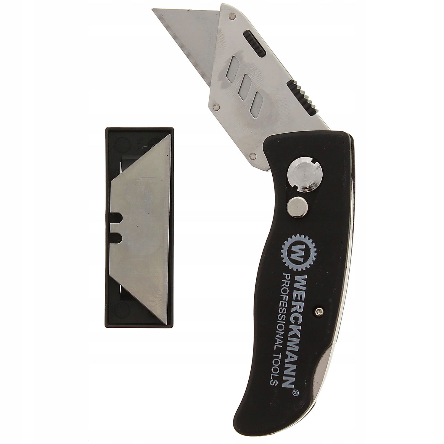 NÓŻ SKŁADANY OSTRZE TRAPEZOWE TAPICERSKI + ZAPAS OSTRZY WERCKMANN czarny
