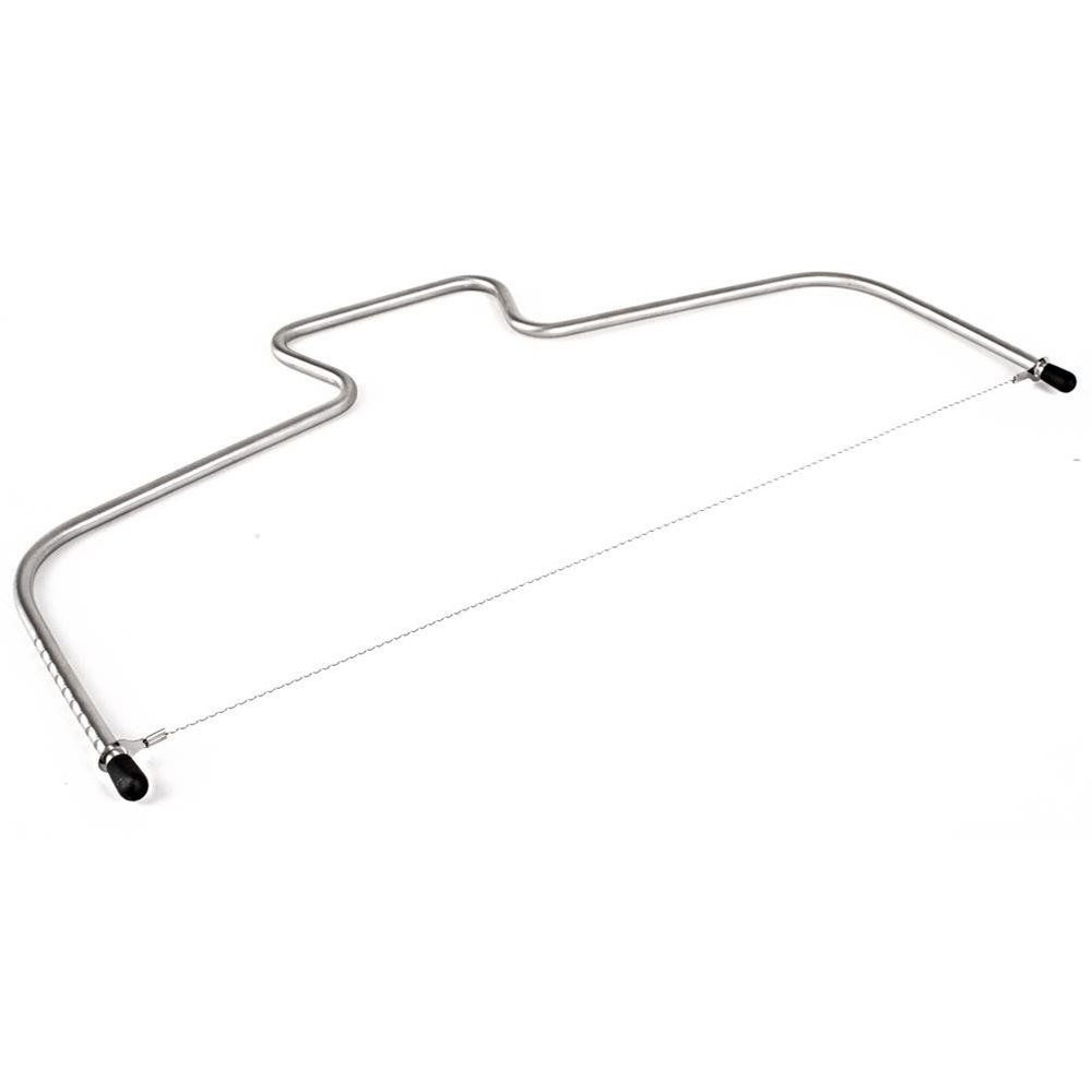 Stalowy nóż strunowy przydatny podczas krojenia ciasta lub biszkoptu. Łatwy w czyszczeniu i wygodny w użytkowaniu. Dzięki niemu przecięcie biszkoptu będzie proste, szybkie i dokładne. Sprawdzi się także do wyrównywania warstw ciasta. Pozwala zaoszczędzić czas i wysiłek, potrzebny przy ręcznym krojeniu ciasta. Niezbędny w każdej kuchni, także tej profesjonalnej.