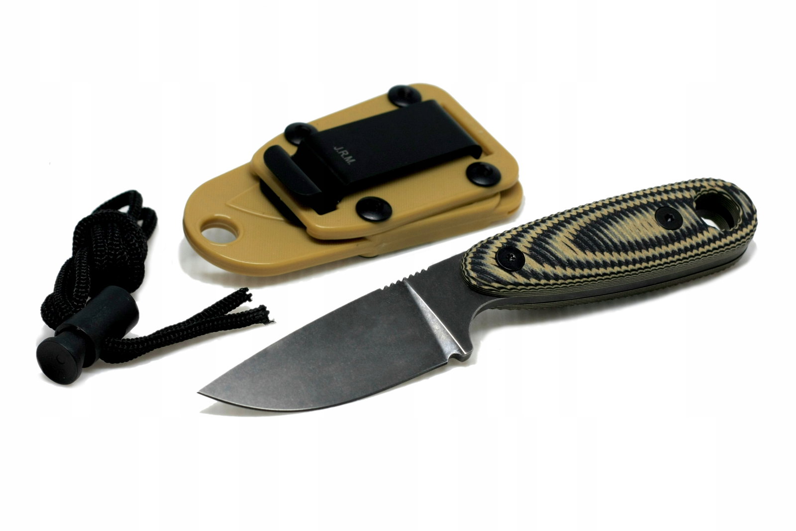 J.R.M. ESE to wielozadaniowy nóż zaprojektowany do pracy w terenie. Ostrze o charakterystyce Drop Point wykonano ze stali D2 o twardości 58-60 HRC i grubości 3,5mm. Model posiada konstrukcję full tang, która zwiększa jego wytrzymałość i odporność na złamanie. Okładziny rękojeści z wytrzymałego tworzywa o nazwie G10 odpowiednio wyprofilowano, tak aby zapewnić pewny chwyt w każdych warunkach. Bezpieczeństwu pracy sprzyjają wypustki na grzbiecie. Rękojeść posiada otwór na linkę. W zestawie znajduje się osłona z tworzywa do wygodnego transportowania noża przy pasie lub wyposażeniu (w pionie jak i poziomie). Ten kompaktowy i ekstremalnie wytrzymały nóż jest chętnie wybierany i ceniony przez ludzi aktywnie zajmujących się survivalem jak również jako nóż codziennego użytku EDC.