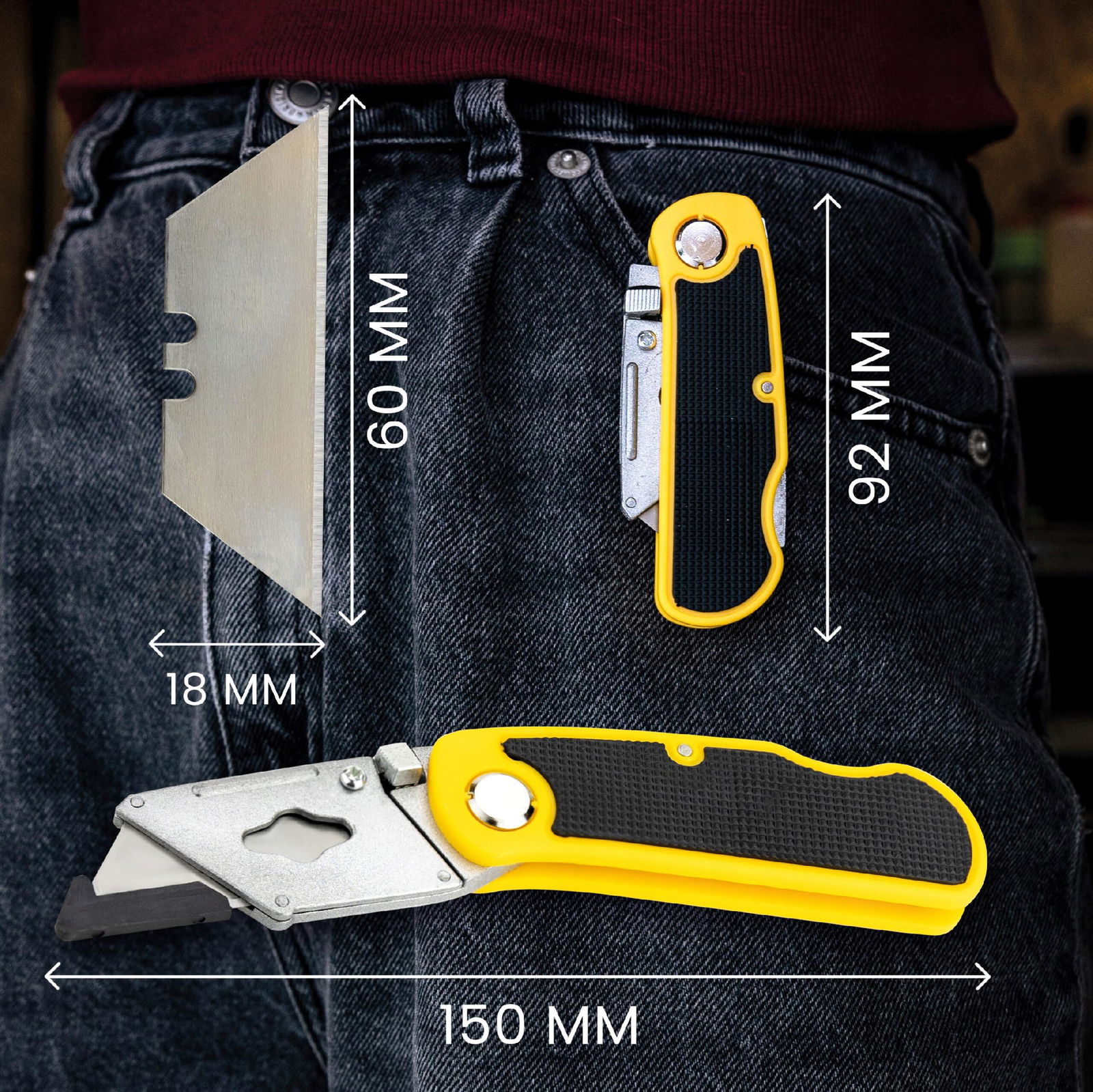 Nóż jest bardzo wszechstronny i przydatny w różnych sytuacjach, idealny do cięcia różnorodnych materiałów, takich jak papier, karton, taśmy, folie itp. Doskonale sprawdza się w pracach remontowych, pakowaniu, tapetowaniu i innych sytuacjach wymagających precyzyjnego cięcia.