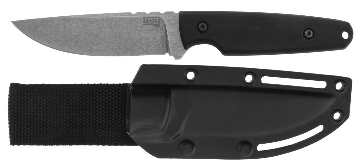 Handie Black G10, Acid Stonewashed uniwersalny nóż polskiej manufaktury ZA-PAS Knives, odpowiedni na każdą wyprawę w teren. Ze względu na swoje wymiary oraz niską wagę niesamowicie poręczny i łatwy w przenoszeniu, bez utraty cech pełnowymiarowego noża bushcraftowego. Nóż outdoorowy o konstrukcji full tang z głownią ze stali narzędziowej NMV, skierowany do pasjonatów survivalu, myślistwa, miłośników każdej pozostałej aktywności w terenie.