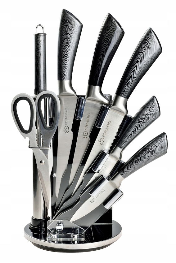 NOŻE Zestaw Komplet NOŻY Kuchennych Na Stojaku OSTRZAŁKA Nożyce Tasak 912