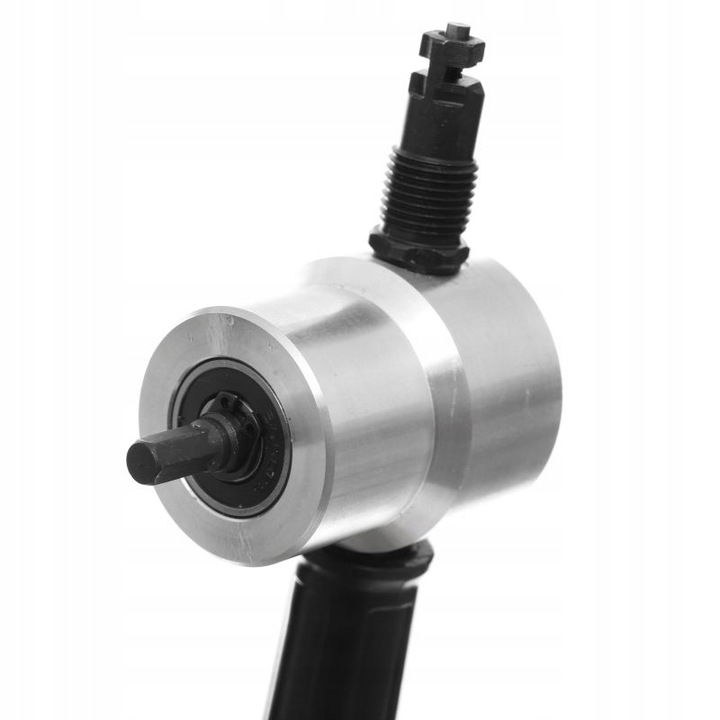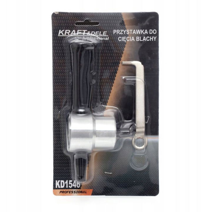 Przystawka do wiertarki mająca zastosowanie podczas cięcia blachy metalowej. Bardzo prosta konstrukcja i łatwość użytkowania. Przystawka działa na zasadzie rozdzieraka do blachy, gdzie specjalne ostrze napędzane obrotami wiertarki wykonuje ruch posuwisto-zwrotny rozdzierając blachę. Korpus przystawki wykonany z aluminium, mechanizm z utwardzanej stali. Sześciokątny trzpień napędowy.