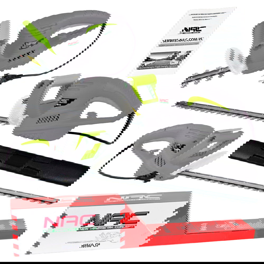 Elektryczne nożyce do cięcia żywopłotu NAC o mocy 600 W.