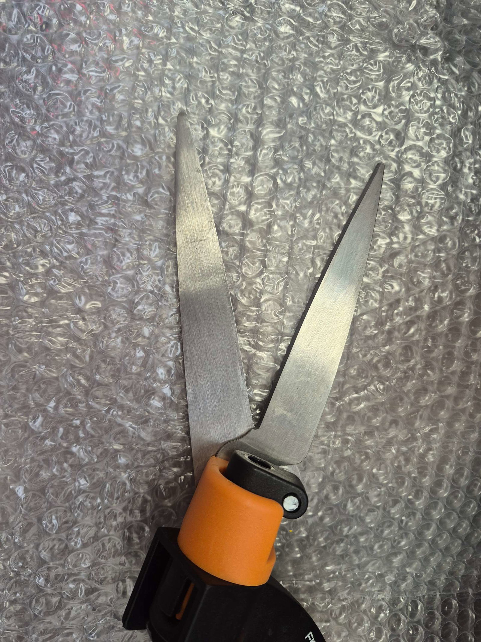 Hartowana stal nierdzewna i wytrzymały plastik z włóknem szklanym to gwarancja trwałości. Bezpieczne przechowywanie umożliwia pomarańczowa głowica blokująca ostrza.