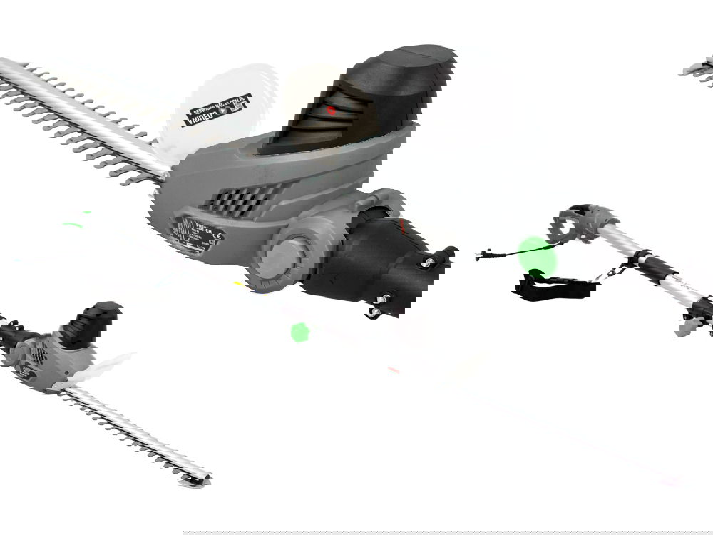 Elektryczne nożyce do cięcia żywopłotu na wysięgniku z teleskopową regulacją długości w zakresie od 220 do 285 cm. Posiadają pochylaną głowicą tnącą o długości ostrza 51 cm. Jest to idealne urządzenie przeznaczone do cięcia żywopłotów i krzewów w miejscach trudno dostępnych oraz znajdujących się na dużej wysokości.