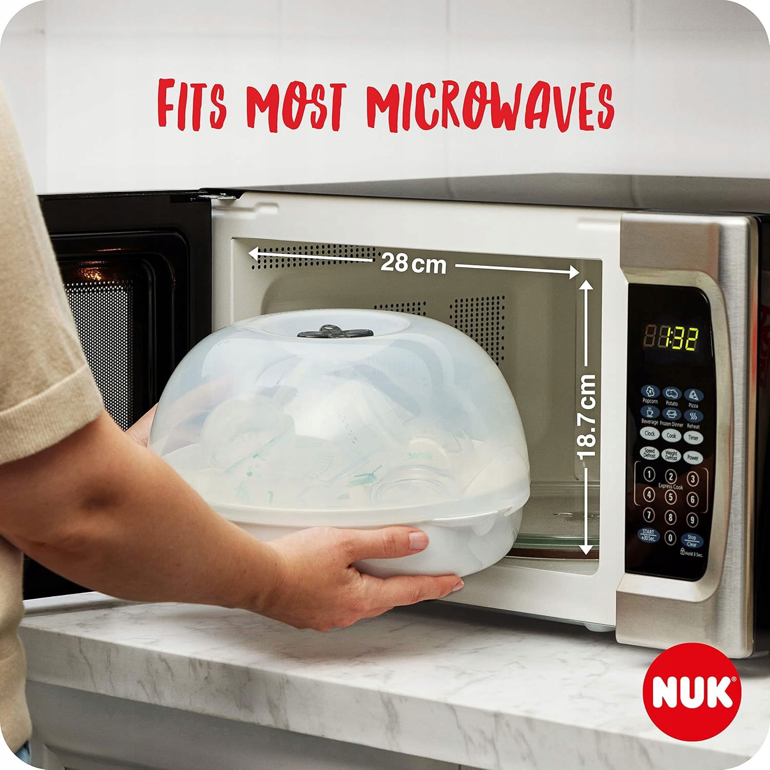 Pasuje do wszystkich standardowych kuchenek mikrofalowych oraz butelek. Można go myć w zmywarce, co upraszcza jego czyszczenie.