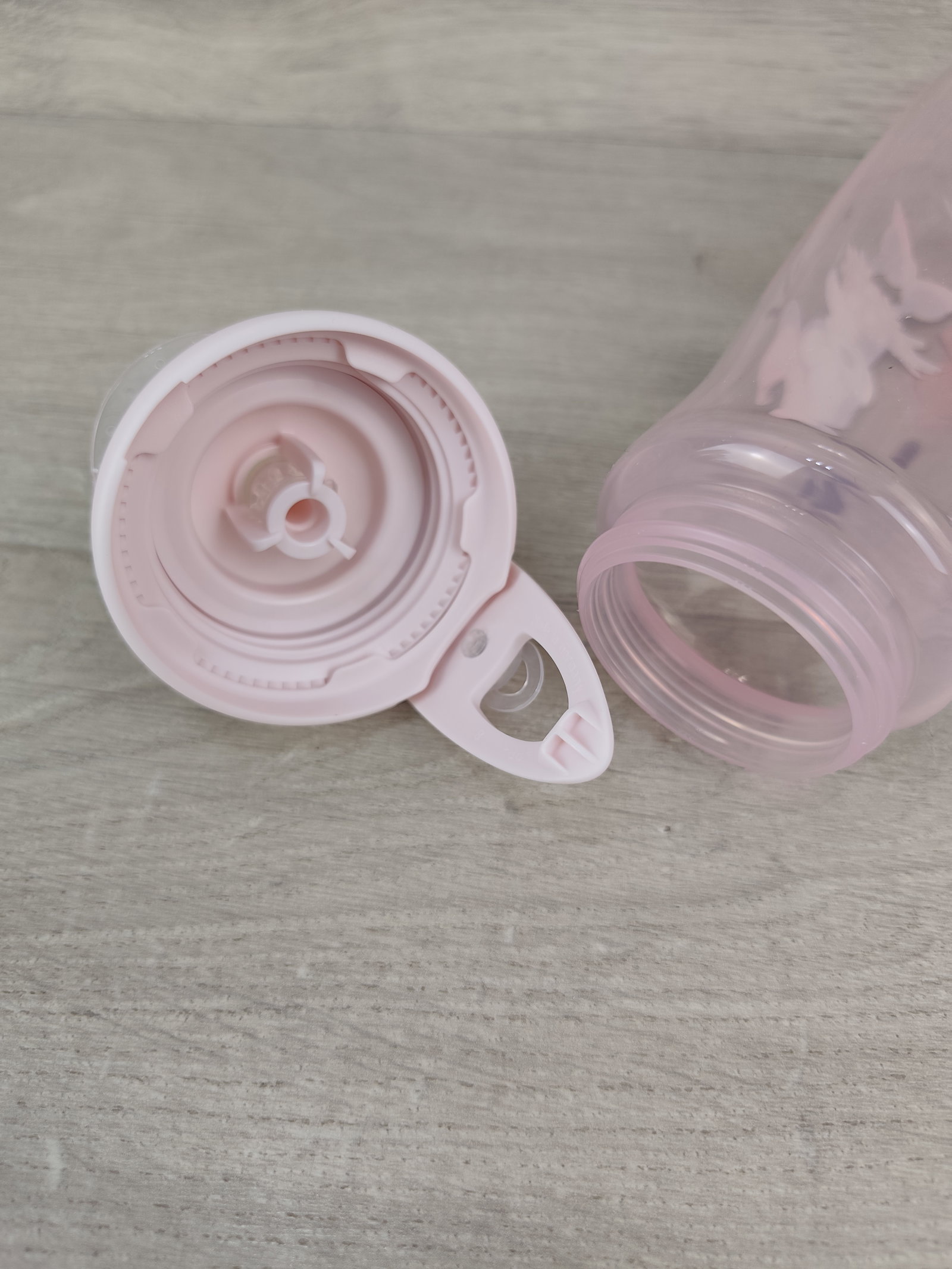 Kubek posiada higieniczną osłonkę oraz klips, dzięki któremu można przypiąć go do plecaka lub wózka. Wykonany z trwałego, bezpiecznego tworzywa bez BPA, jest łatwy do mycia i codziennego użytkowania.