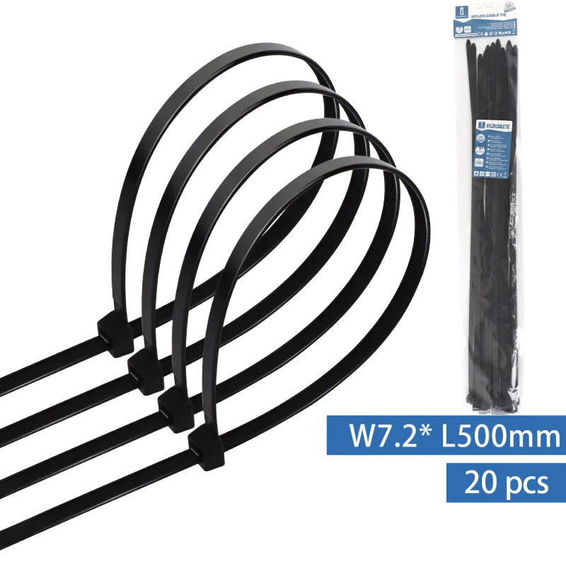 Nylonowa opaska zaciskowa 20 szt. 7,2x500 mm czarna