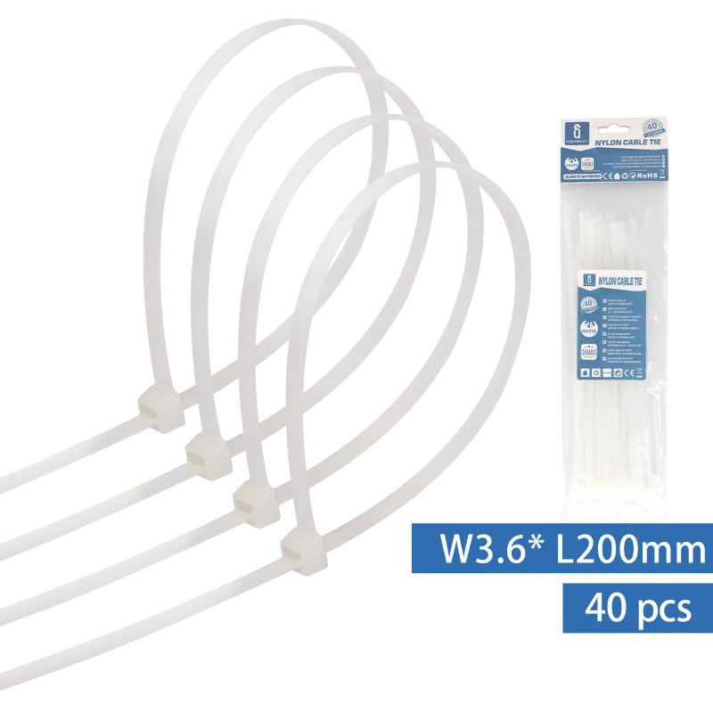 Nylonowa opaska zaciskowa 40 szt. 3,6x200 mm biała