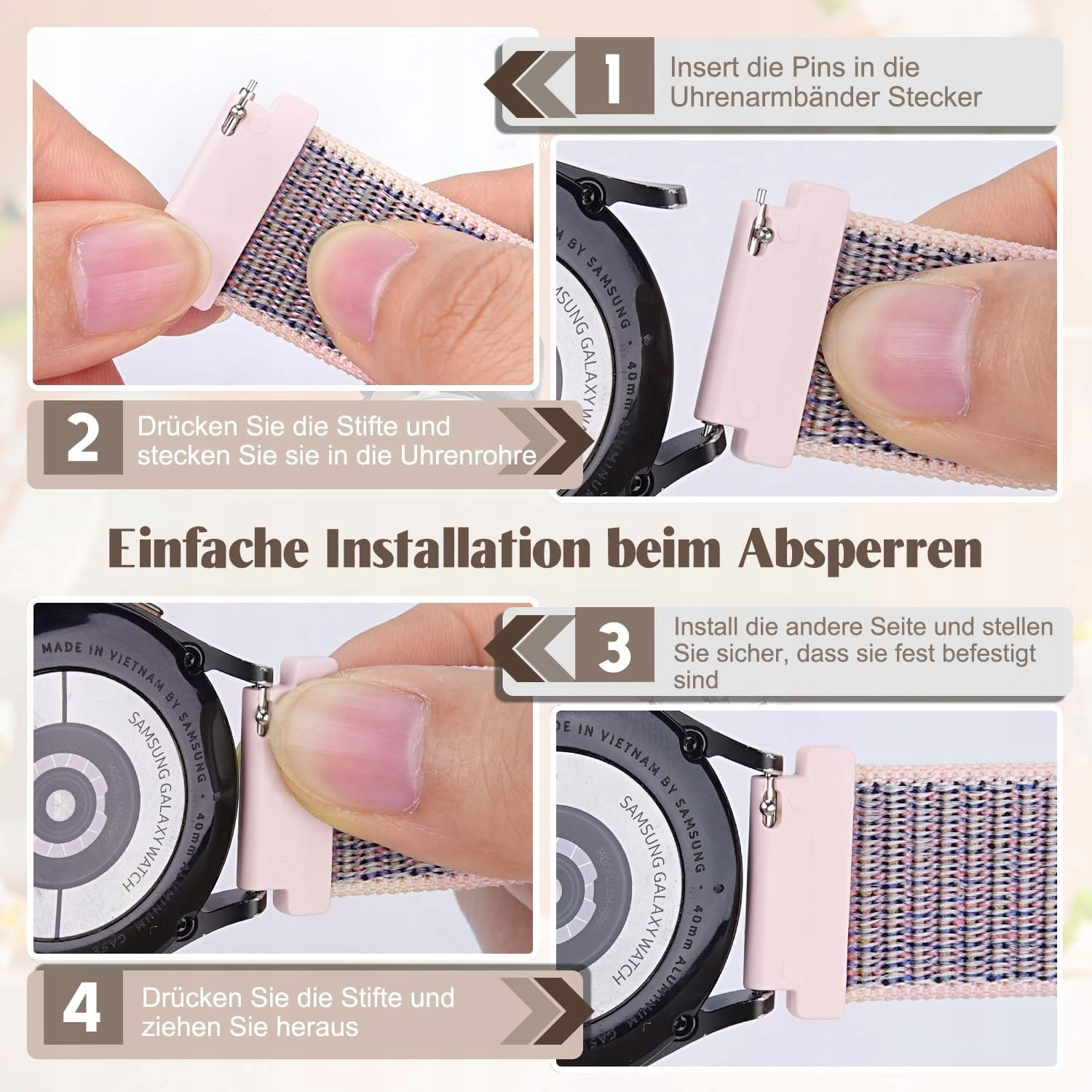 Nylonowy pasek 20 mm, kompatybilny z Samsung Galaxy Watch 6/5/4 40 mm 44 mm