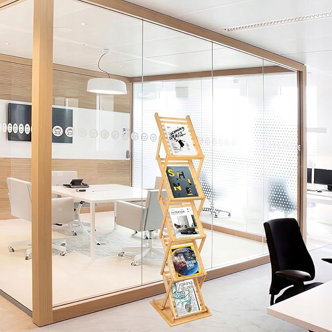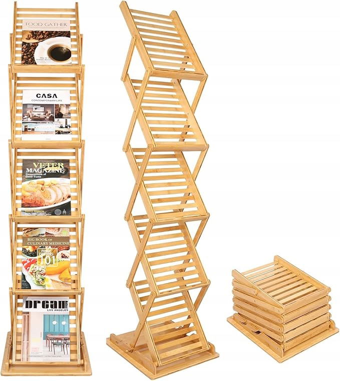 Nynelly Składany stojak na prospekty czasopisma na literaturę, bambusowy
