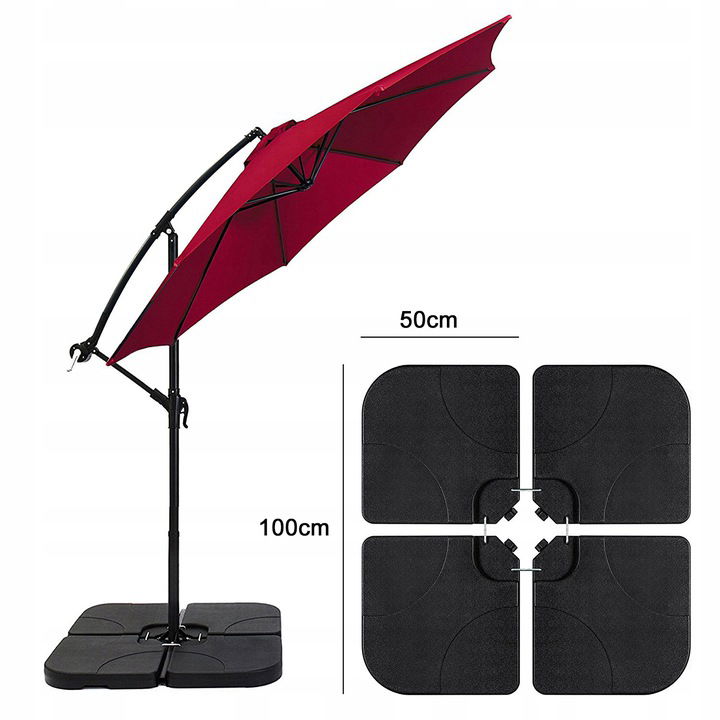 Podstawa o wymiarach 50 x 50 x 7 cm zapewnia odpowiednią stabilność dla większości parasoli ogrodowych. Uniwersalne rozmiary pozwalają łatwo dopasować podstawę do parasola, który już posiadasz lub planujesz zakupić.
