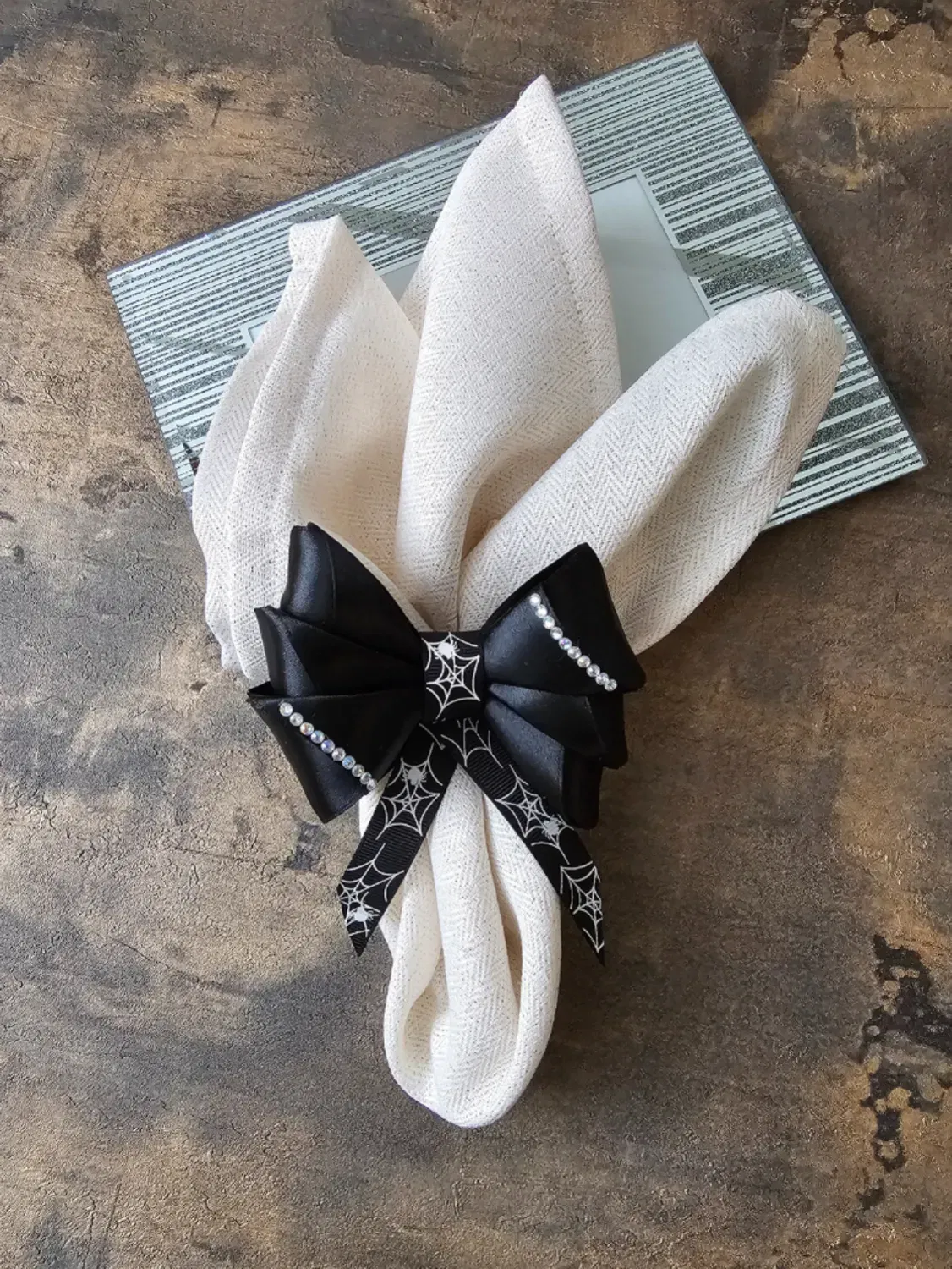 Obrączki na serwetki czarne Halloween pająk cyrkonie