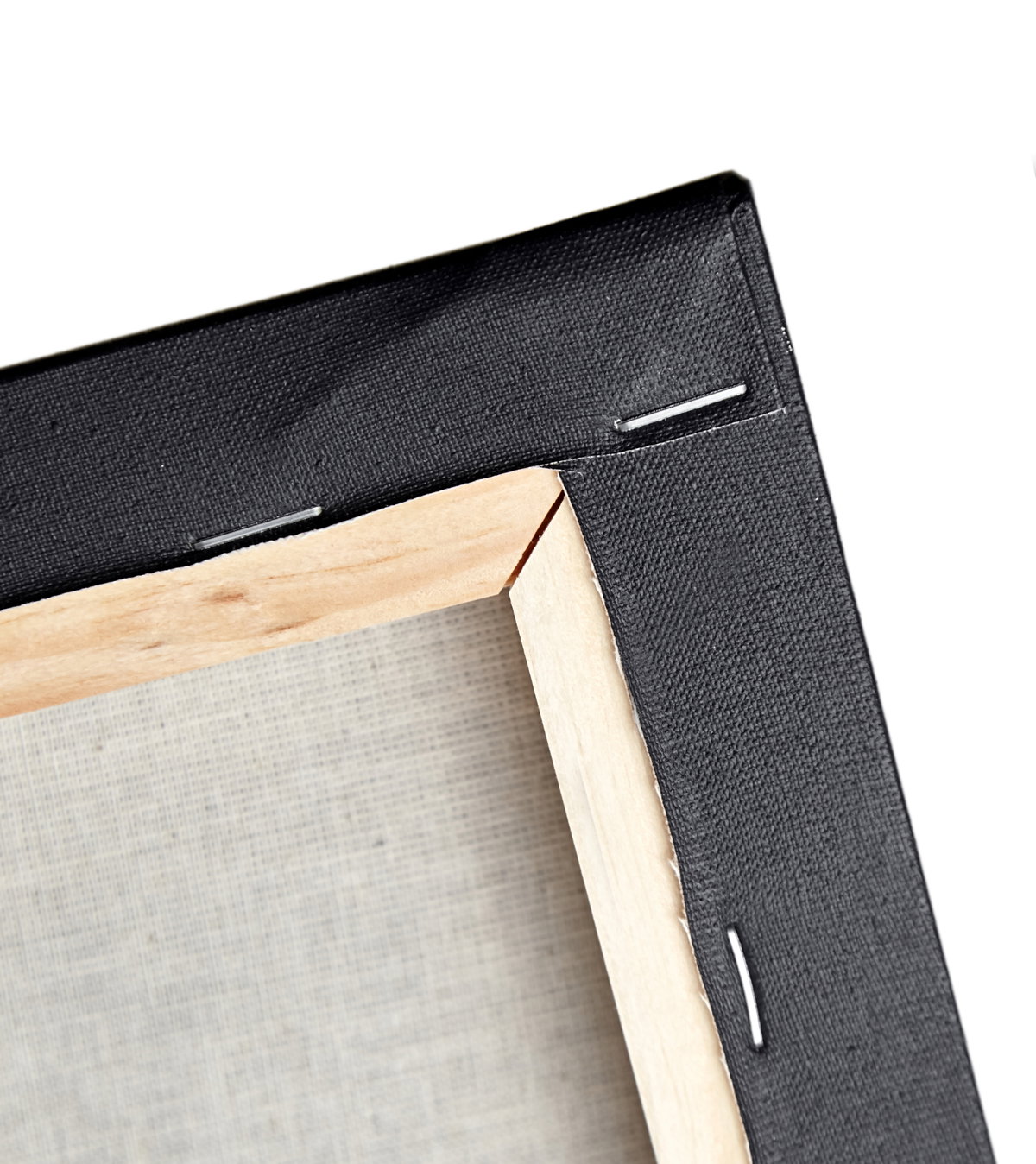Płótno jest obite na drewnianej blejtramie – gotowe do zawieszenia.