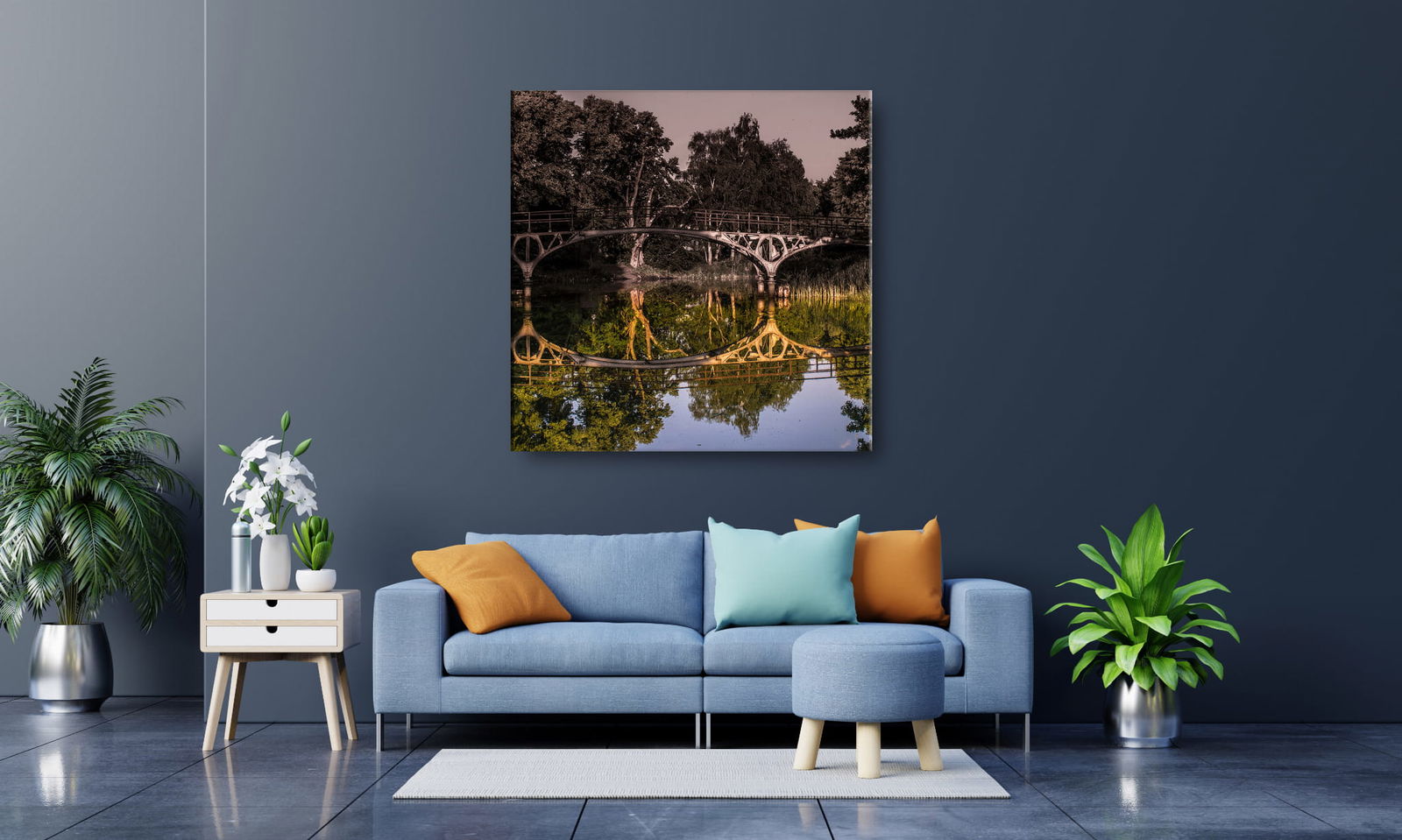 OBRAZ NA SZKLE KWADRATOWY 40x40cm 068 Most w lesie
