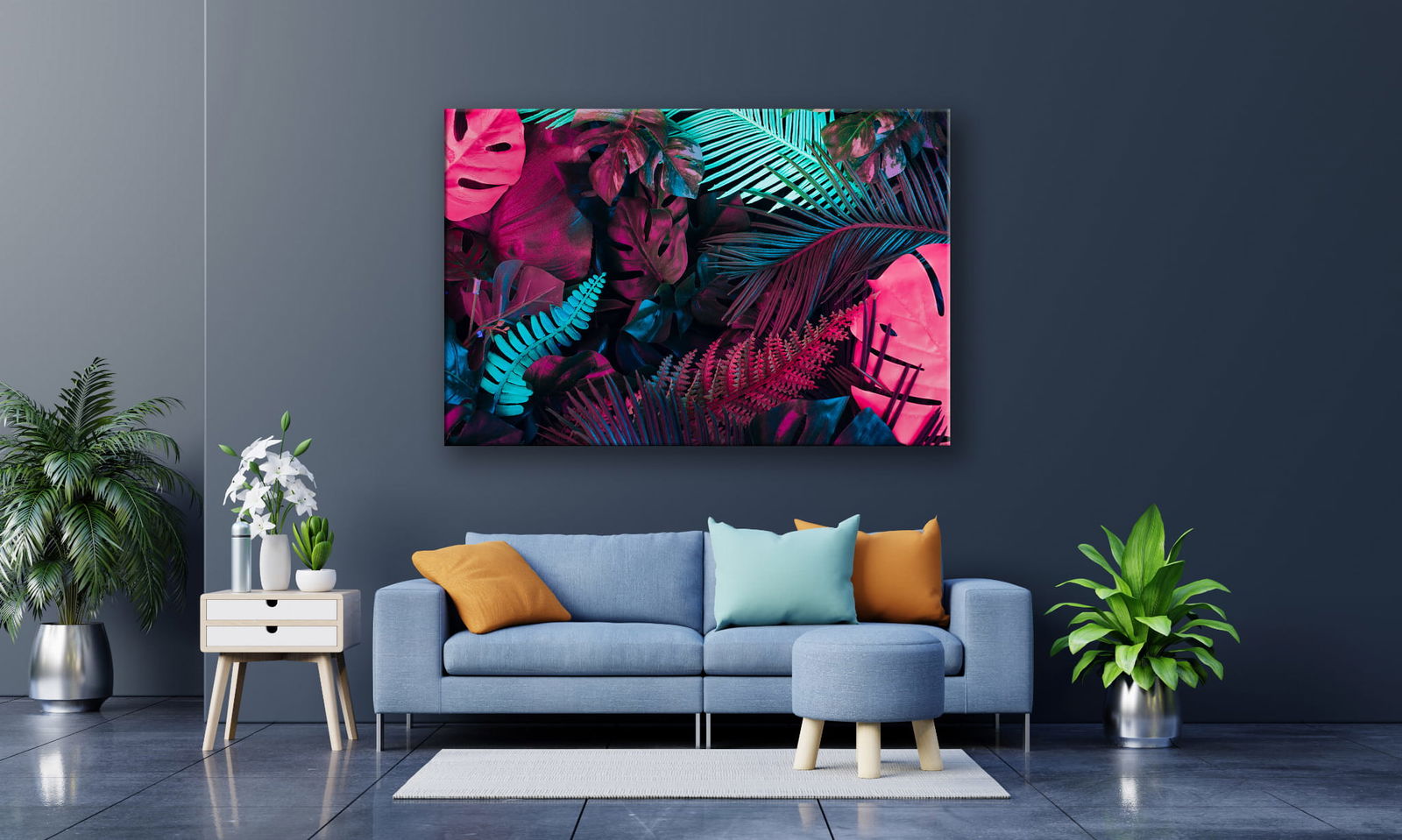 Obraz wygląda nowocześnie i nadaje się do ekspozycji w domu oraz biurze bez oprawiania w ramę.