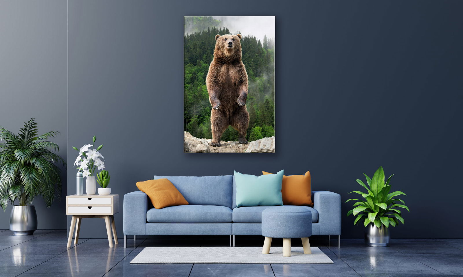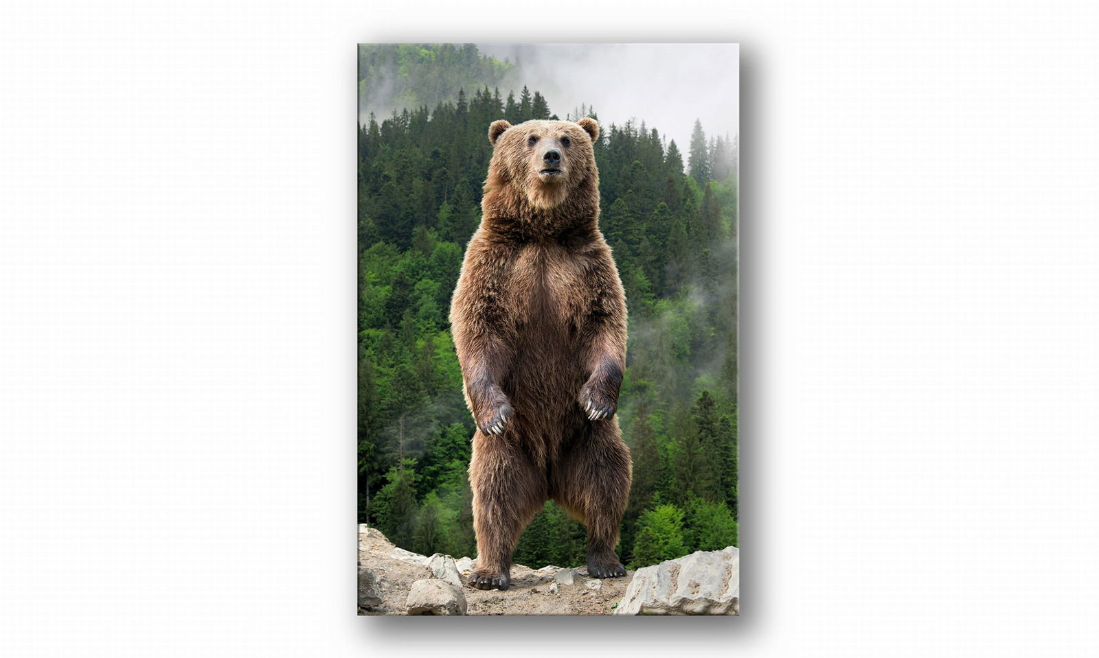 OBRAZ NA SZKLE PROSTOKĄTNY 40x60cm 142 Stojący niedźwiedź