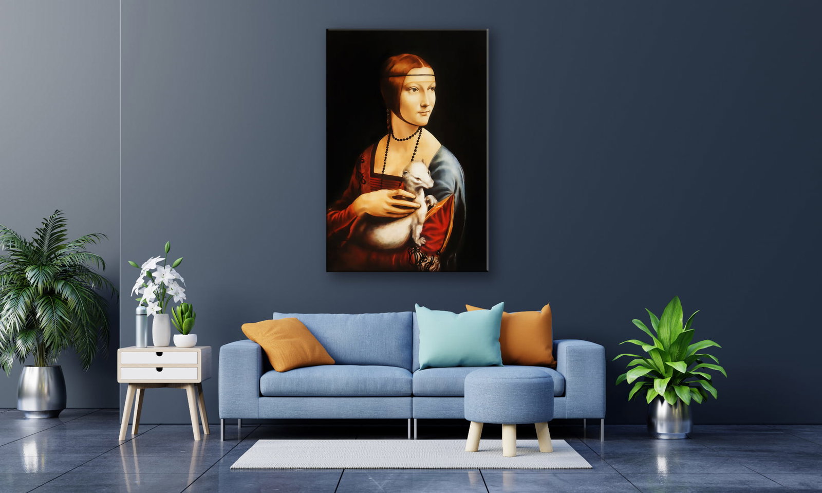 OBRAZ NA SZKLE PROSTOKĄTNY 60x90cm 002 Dama z gronostajem