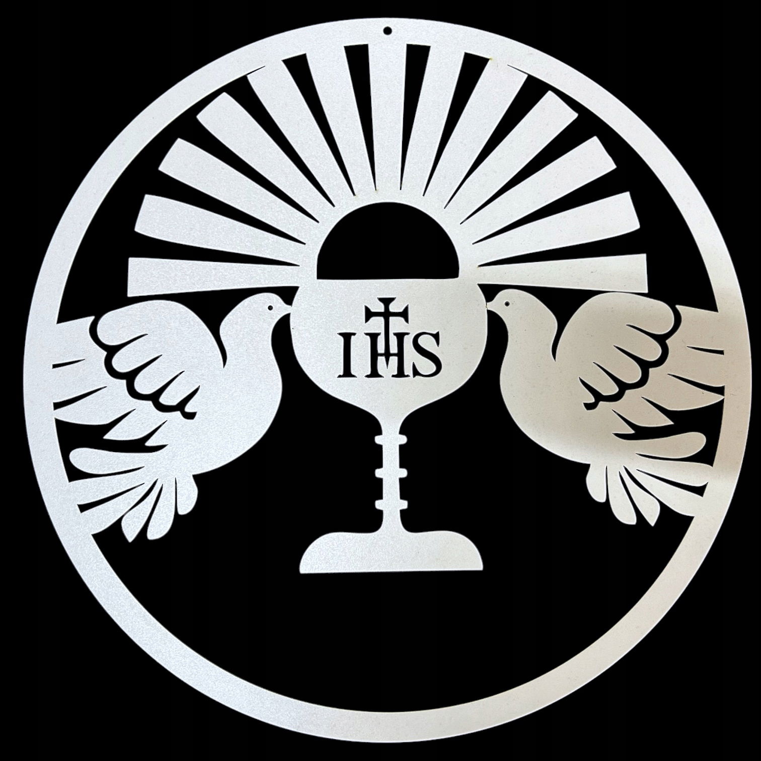 Obręcz napis ozdoba do zawieszenia PIerwsza Komunia Święta gołąbki RP172
