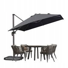 - System korbowy tego wspornikowego parasola ułatwia podnoszenie i opuszczanie czaszy, unikalna konstrukcja uchwytu sprawia, że przechylanie parasola jest bezproblemowe, pedał nożny umożliwia pełny obrót o 360 stopni.