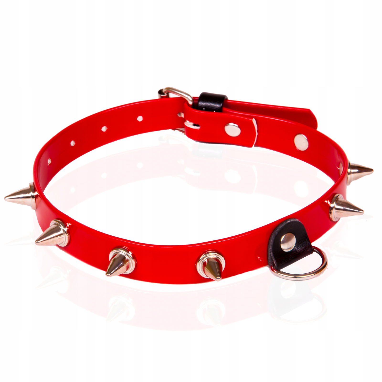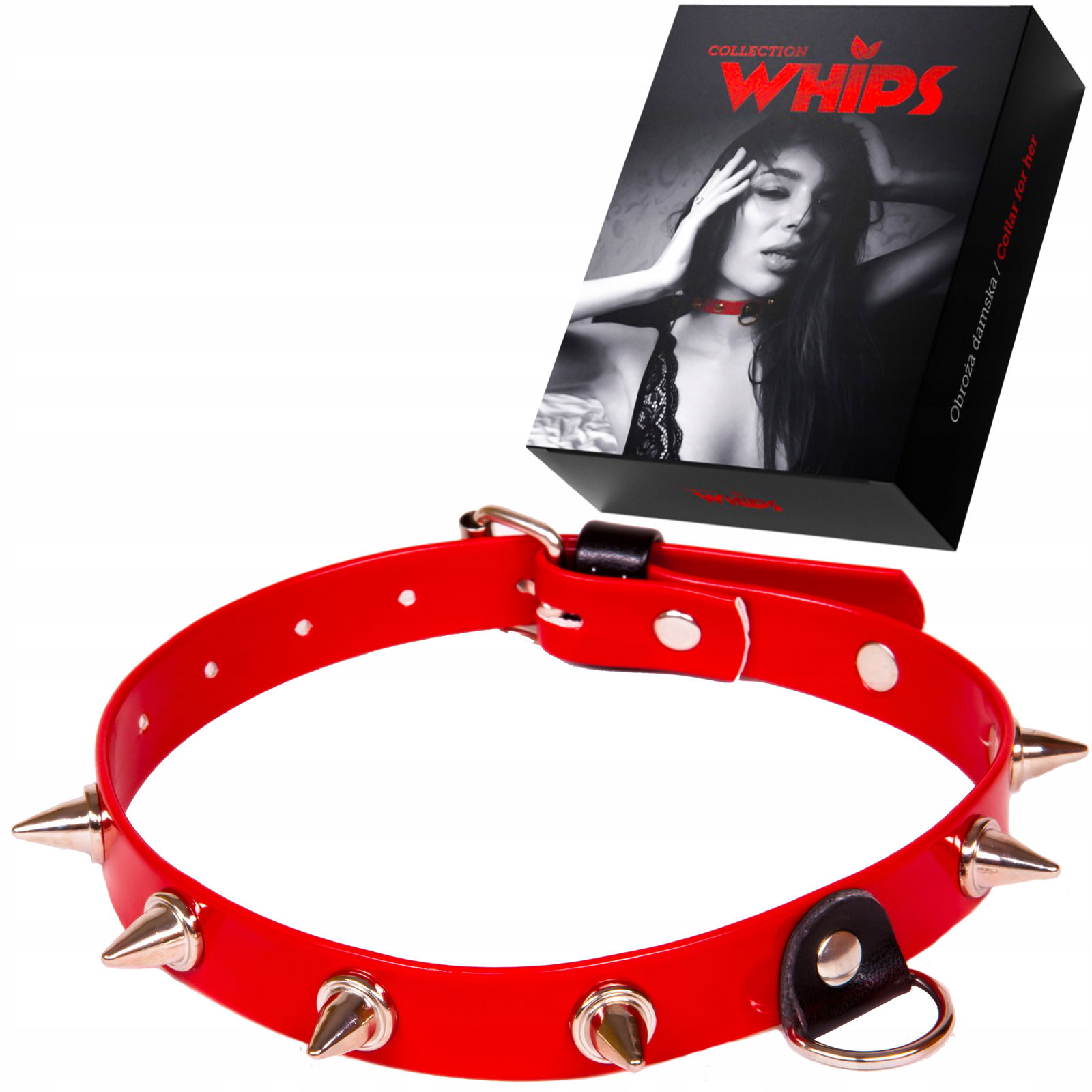 Wiązania-WHIPS lakier, obroża damska z kolcami, czerwona