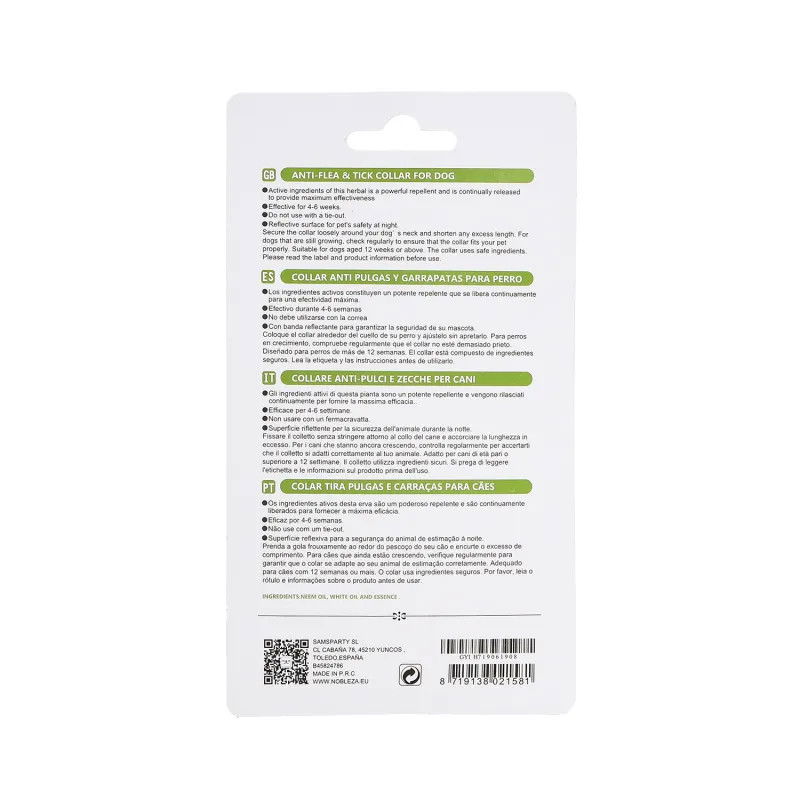 Zawiera naturalne substancje roślinne odstraszające pchły, roztocza i kleszcze, sprawia, że sierść staje się lśniąca. Odblaskowa powierzchnia poprawia bezpieczeństwo podczas nocnych spacerów.