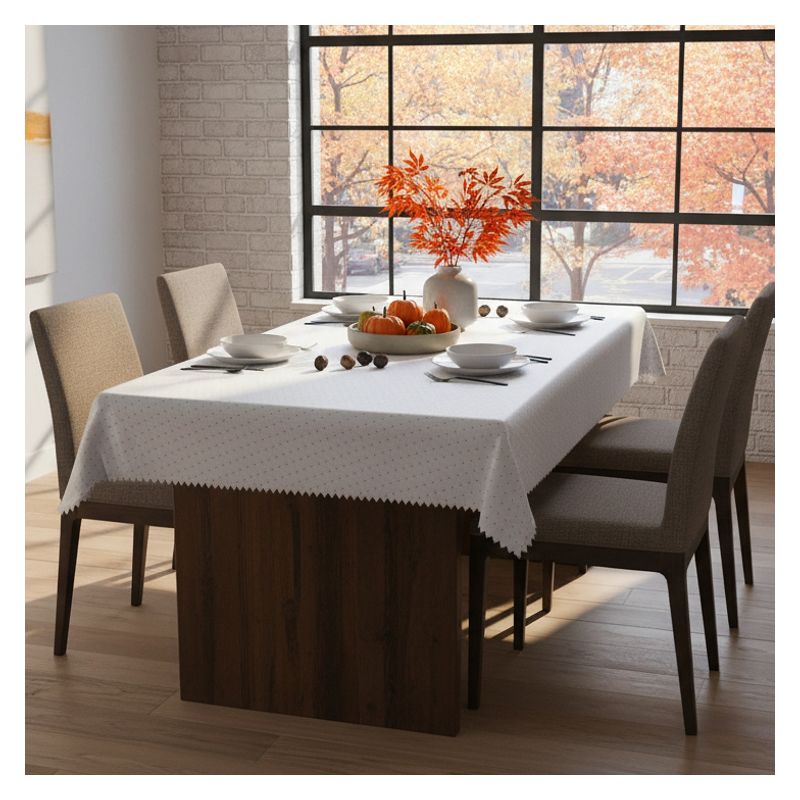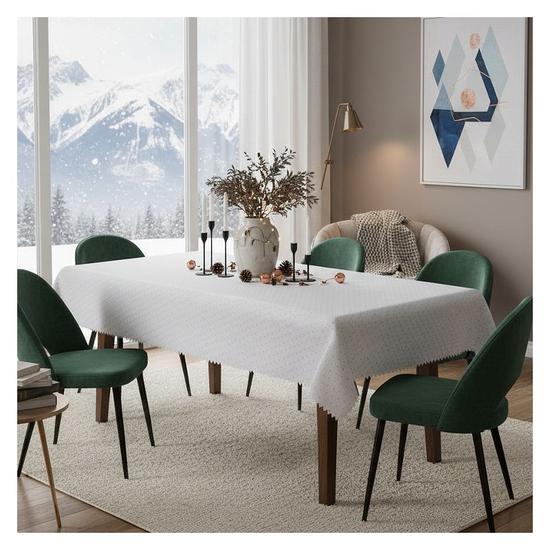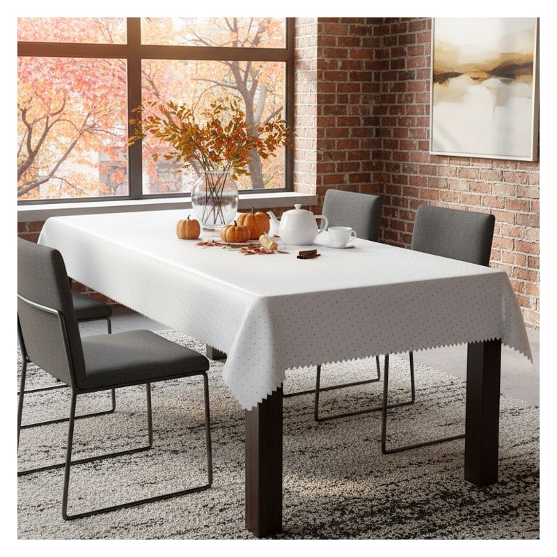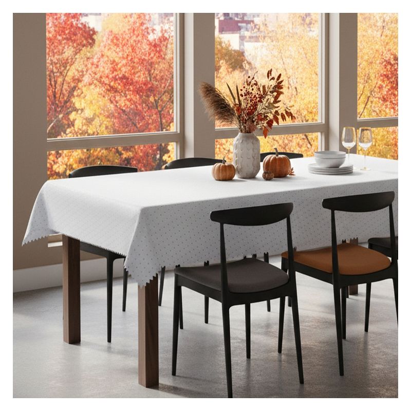 Nasz prostokątny obrus z kropkami w kolorze białym podkreśli elegancki wygląd Twojego stołu - dekoracja idealna jest zarówno na co dzień, jak i na specjalne, uroczyste okazje.