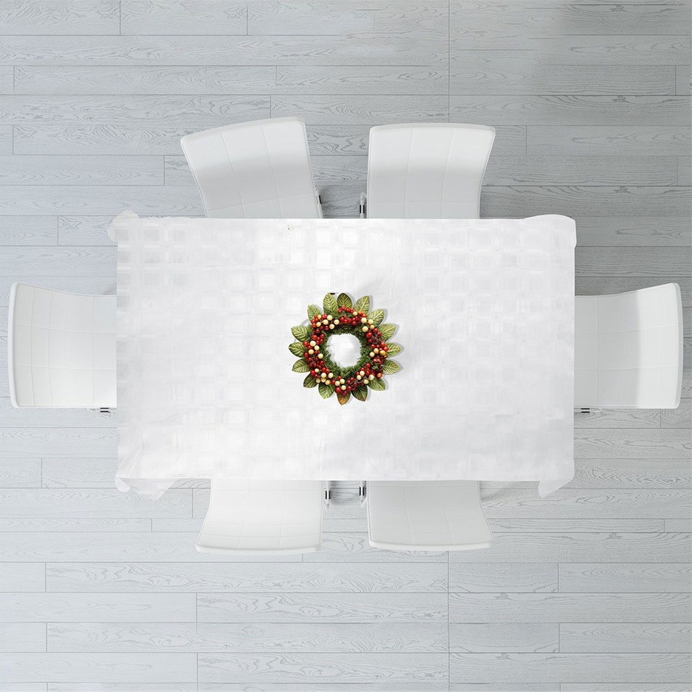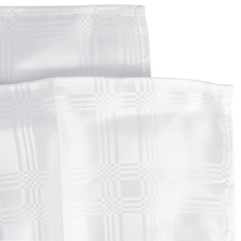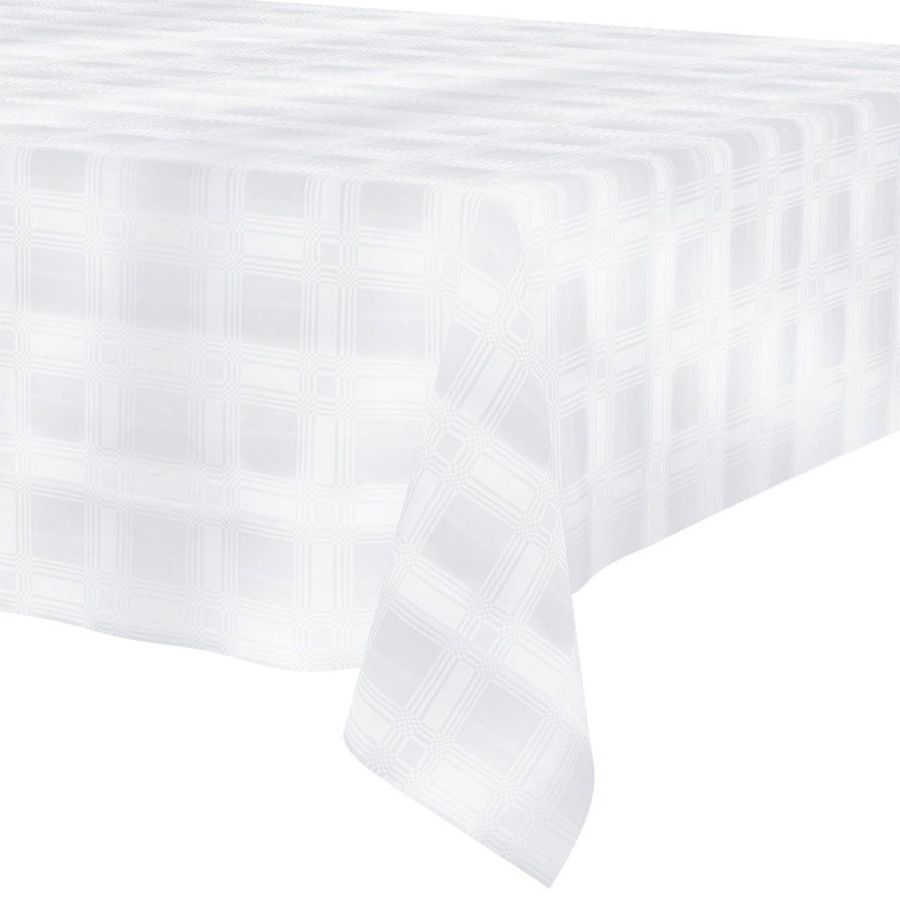 Trwały i odporny na zabrudzenia - Obrus wykonany z poliestru w kolorze białym z efektownym wzorem. Praktyczny w codziennym użytkowaniu oraz idealny na specjalne okazje.