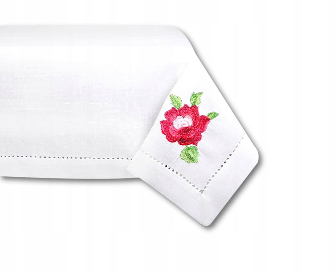 Wykończenie: ażurowa obwódka, haft na każdym z rogów Kolekcja: róża