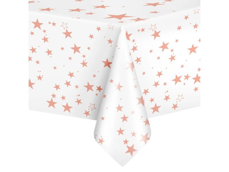 Obrus foliowy w gwiazdki, różowe złoto, 137 cm x 274 cm