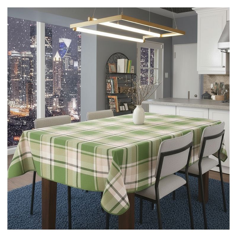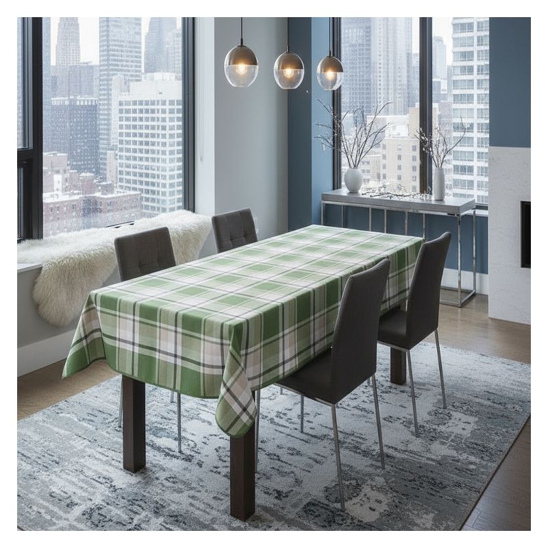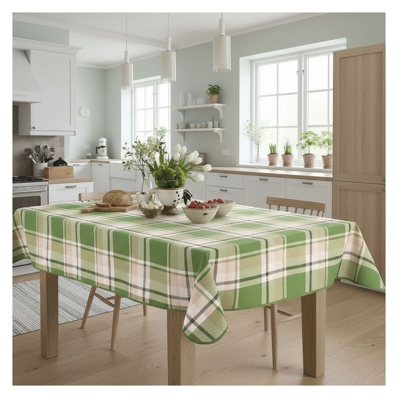 Przyjemna dla oka zielona krata podkreśla estetyczny design obrusa i sprawia, że nadaje się on doskonale jako nakrycie Twojego stołu podczas spotkań rodzinnych czy przyjęć.