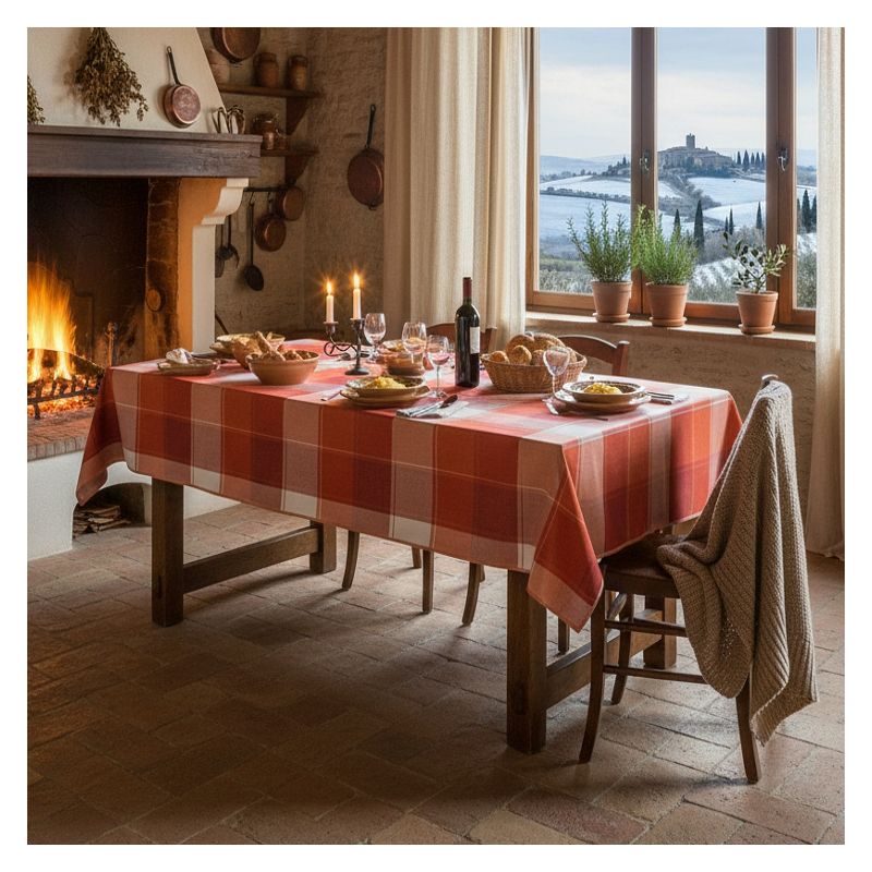 Ponadczasowy wzór kraty w czerwonej kolorystyce sprawia, że obrus jest atrakcyjnym wizualnie uzupełnieniem zarówno tradycyjnych, jak i nowoczesnych oraz minimalistycznych aranżacji wnętrz.