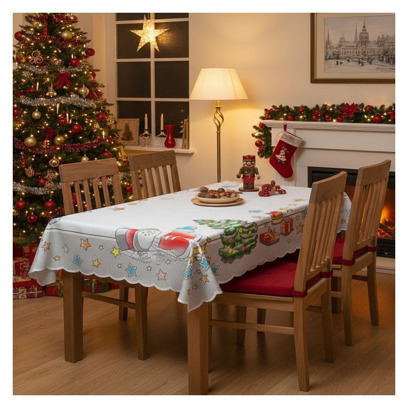 Ekstra duży świąteczny obrus o wymiarach 150 x 300 cm to przyciągający wzrok element dekoracyjny, który wprowadzi bożonarodzeniową atmosferę do Twojego domu lub mieszkania.