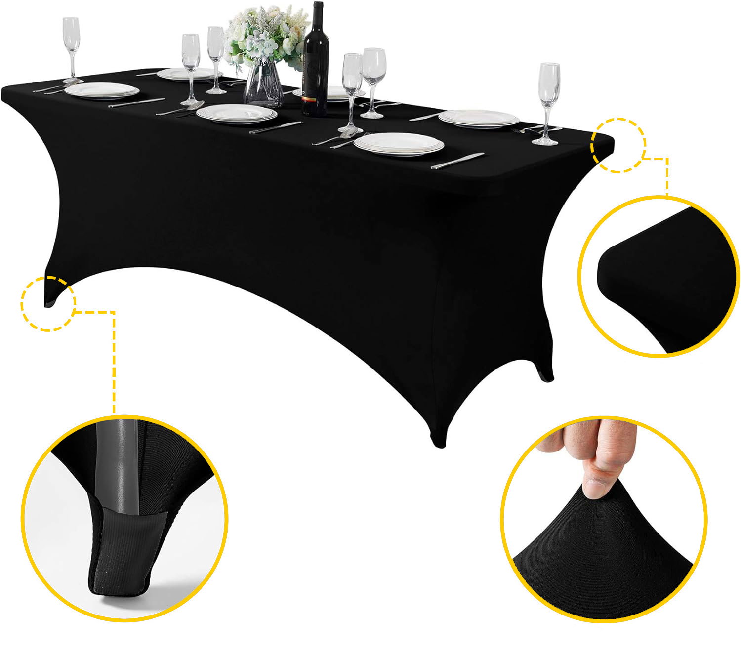 - Elastyczny materiał sprawia, że łatwo założysz go i zamocujesz na nogach stołu, dzięki czemu obejmie on cały mebel, napinając się i nadając mu elegancji.