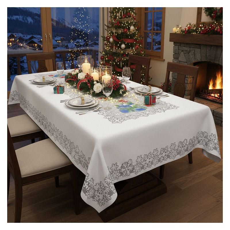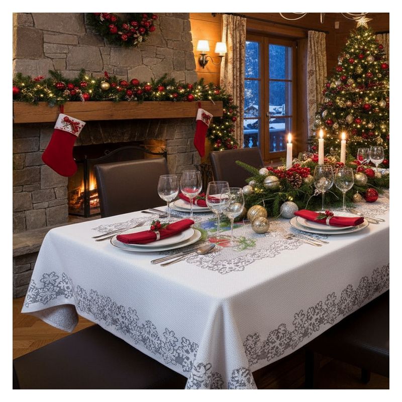 Prostokątny obrus idealny jest do eleganckiej dekoracji Twojego stołu na czas rodzinnych spotkań w zimowo-bożonarodzeniowym okresie.