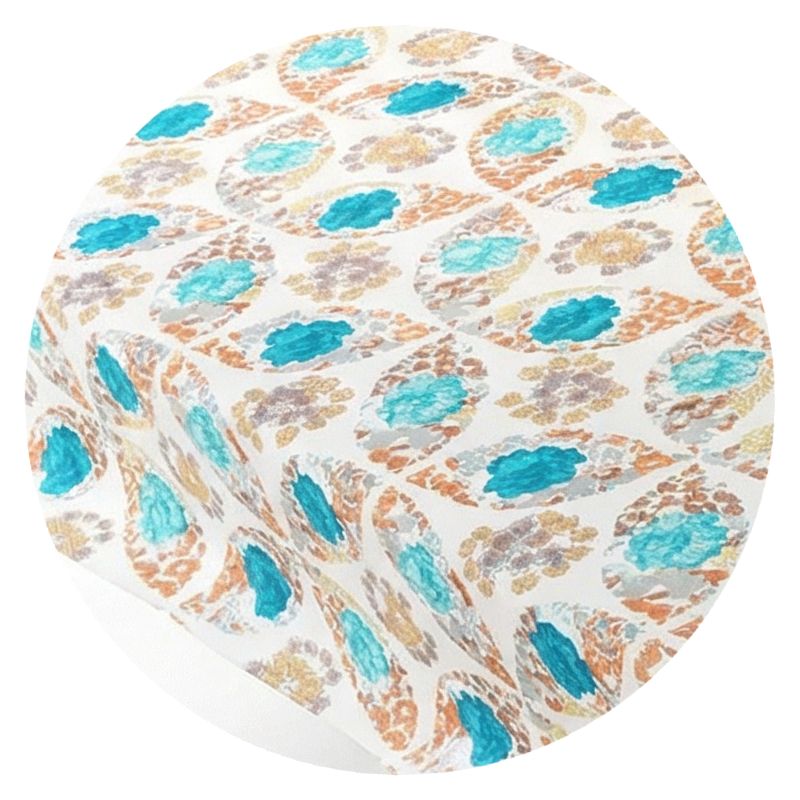Przyjemny dla oka wielokolorowy motyw kwiatowy podkreśla estetyczny design obrusa i sprawia, że nadaje się on doskonale jako nakrycie Twojego stołu podczas spotkań rodzinnych czy przyjęć.