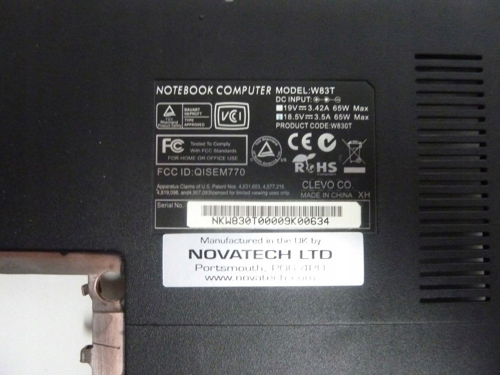 Obudowa do laptopa Novatech CLEVO W83T część DOLNA.Część pochodzi z demontażu laptopa.Stan wizualny jak na zdjęciach.!!!WSZYSTKIE ZACZEPY SĄ SPRAWNE!!!