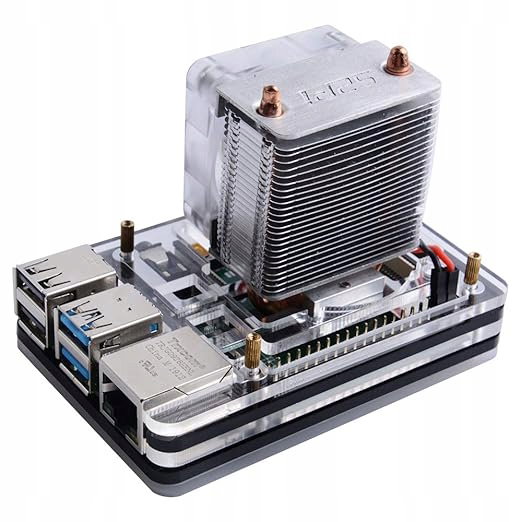 GeeekPi Raspberry Pi 4 to akrylowa obudowa z zaawansowanym systemem chłodzenia, zaprojektowana specjalnie dla Raspberry Pi 4 Model B. Dzięki strukturze wieży lodowej i wydajnemu wentylatorowi z podświetleniem LED skutecznie redukuje temperaturę urządzenia, zapewniając optymalną wydajność nawet podczas przetaktowywania.