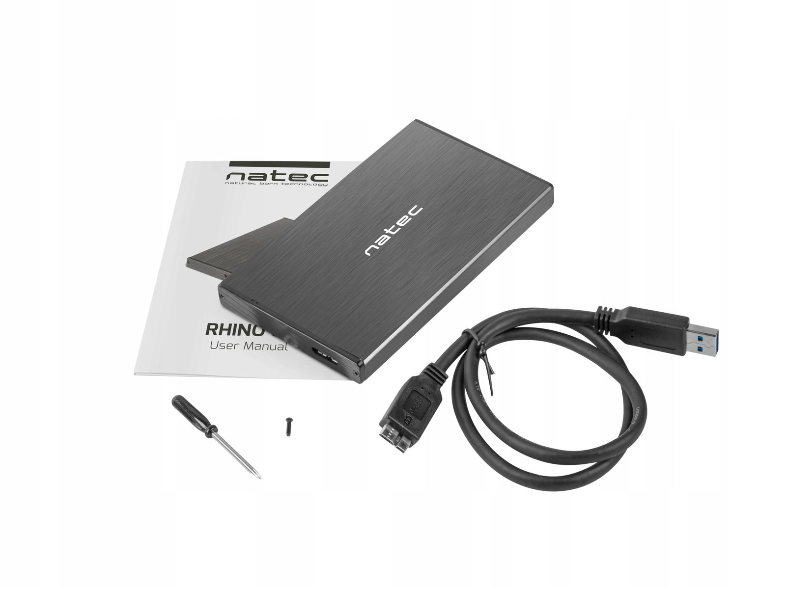 OBUDOWA ZEWNĘTRZNA SATA NATEC RHINO GO 2.5\" USB 3.0; SZYBKI PRZEKAZ DANYCH I UNIWERSALNY CHARAKTER; Obudowa zewnętrzna Rhino GO oferuje bardzo szybki transfer danych przy zachowaniu dużej funkcjonalności. Dzięki zastosowaniu portu w technologii USB 3.0, użytkownik zyskuje możliwość przesyłania danych z prędkością nawet 5 Gb/s. Obudowa obsługuje interfejs SATA I/II/III 9.5 mm oraz zarówno dyski HDD i SSD o pojemności dochodzącej aż do 4TB. INTUICYJNA OBSŁUGA; Rhino GO to również szybka i intuicyjna obsługa. Dzięki rozwiązaniu Plug&Play, oszczędzamy czas potrzebny na instalację urządzenia. Kieszeń jest kompatybilna z Windows 10. Dodatkowo Rhino GO została wyposażona w diodę LED, która wskazuje poziom zasilania oraz tryb pracy (dostęp do danych). Obudowa jest zasilana przez port USB, zatem nie wymaga dodatkowego zasilacza zewnętrznego. TRWAŁA KONSTRUKCJA; Przy obudowie zewnętrznej bardzo istotna jest konstrukcja. Rhino GO zostało zaprojektowane tak, aby zapewnić odpowiednie bezpieczeństwo znajdującemu się wewnątrz dyskowi oraz optymalny poziom jego chłodzenia. Zastosowanie dobrej jakości aluminium oraz kompaktowy rozmiar zwiększają trwałość urządzenia i dobre odprowadzanie ciepła.