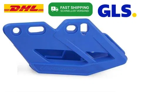 Obudowa prowadnicy łańcucha Polisport w kolorze niebieskim, wykonana z wytrzymałego tworzywa sztucznego, zapewnia ochronę łańcucha i zębatki przed uszkodzeniami. Jest to zamiennik OEM, zaprojektowany w celu precyzyjnego prowadzenia łańcucha i zwiększenia jego żywotności w trudnych warunkach terenowych.