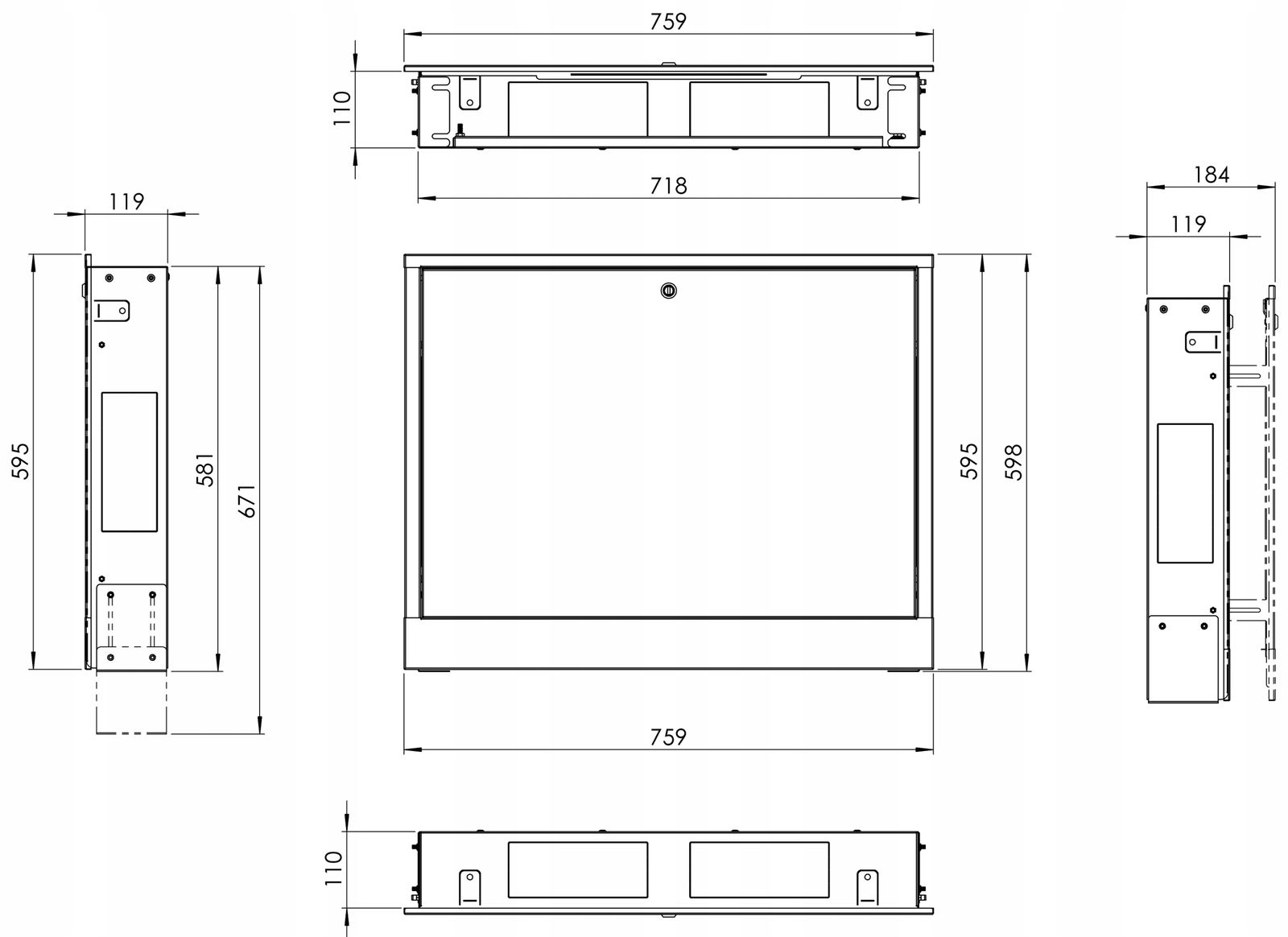 Szafka podtynkowa do montażu rozdzielacza hydraulicznego na 10 obwodów grzewczych 759x119x598mm czarna