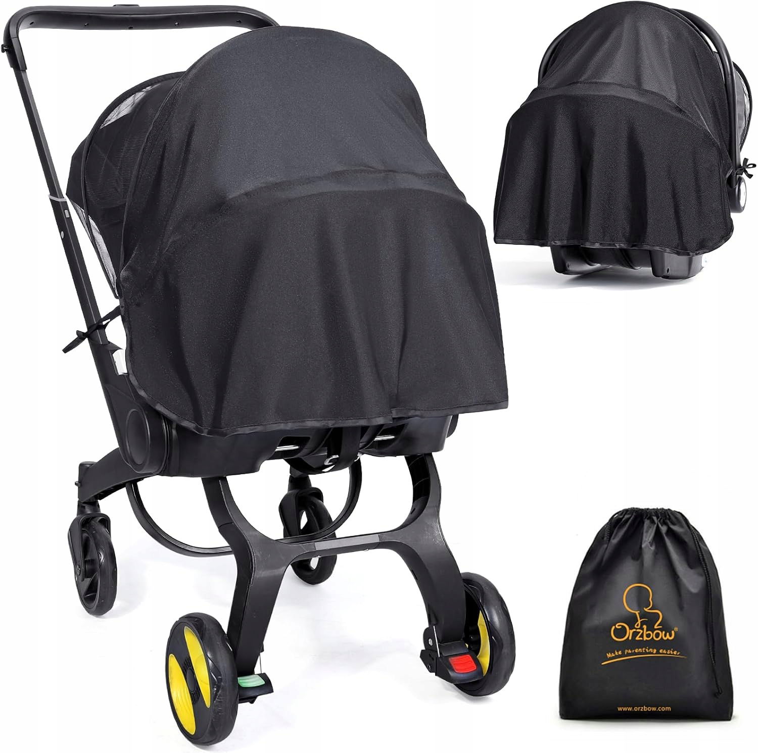 Orzbow 2 w 1 ochrona przed owadami i ochrona przed słońcem dla niemowląt, oddychający żagiel przeciwsłoneczny do fotelika dziecięcego z UPF 50+ i podpórkami, uniwersalna siatka na komary pasuje do �?☀️