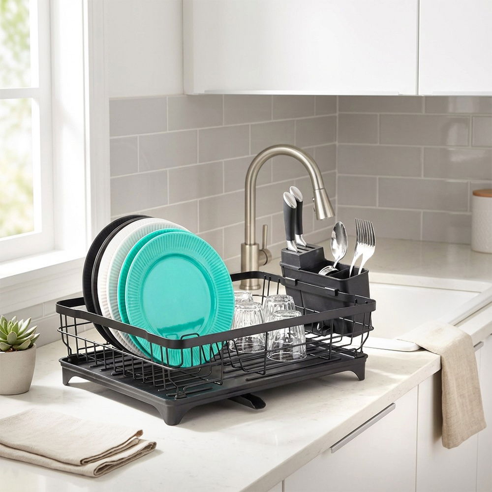 Ociekacz Duża Suszarka Naczynia Talerze Sztućce Kubki Czarna Metalowa