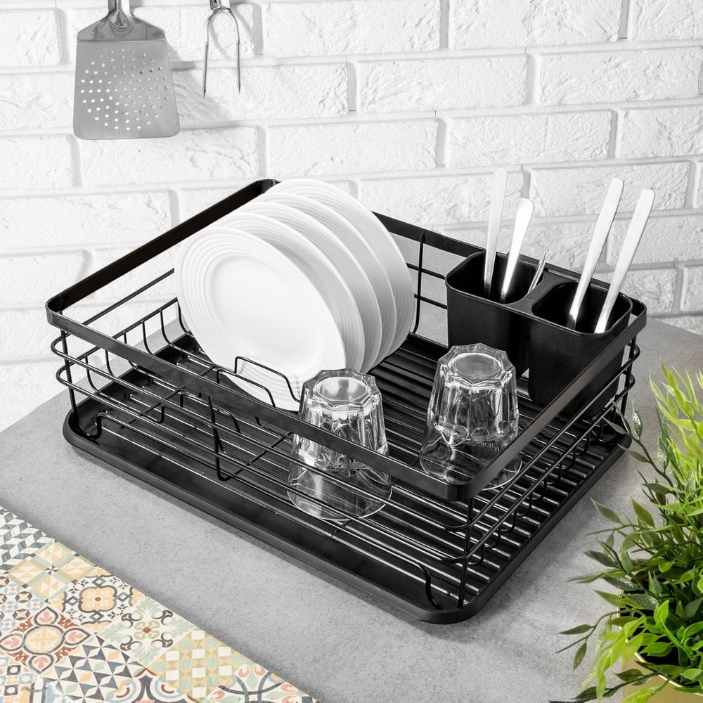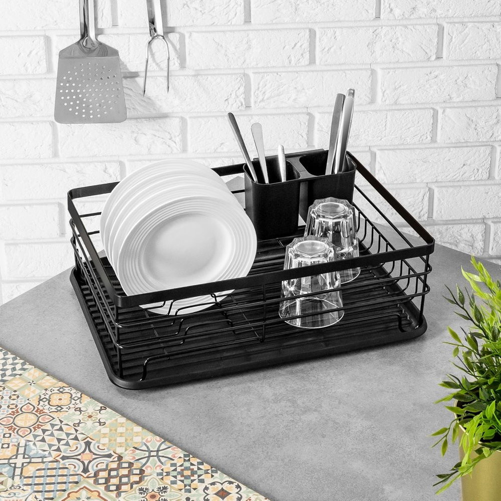 Solidna i wytrzymała - Suszarka wykonana z nierdzewnego metalu w kolorze czarnym. Wyposażona w wyjmowaną tacę i ociekacz na sztućce z najwyższej jakości tworzywa w kolorze czarnym.