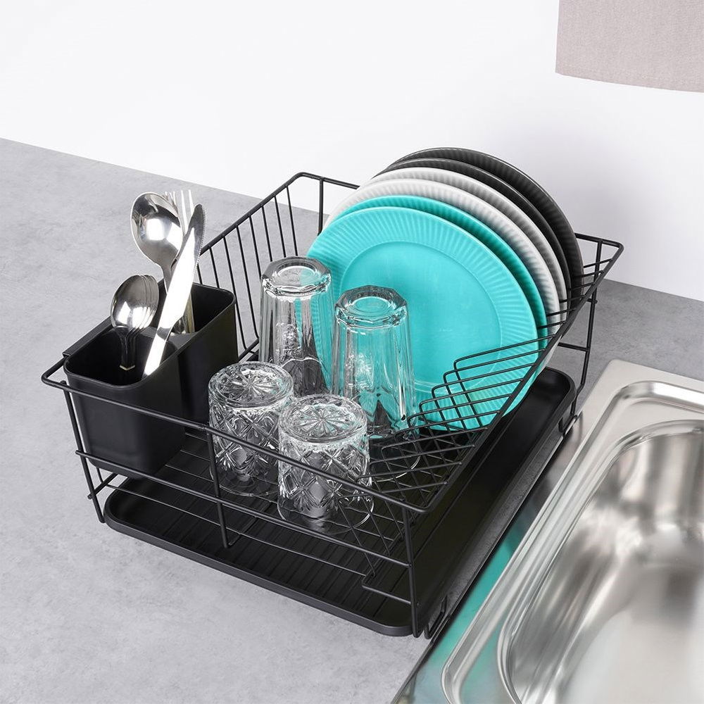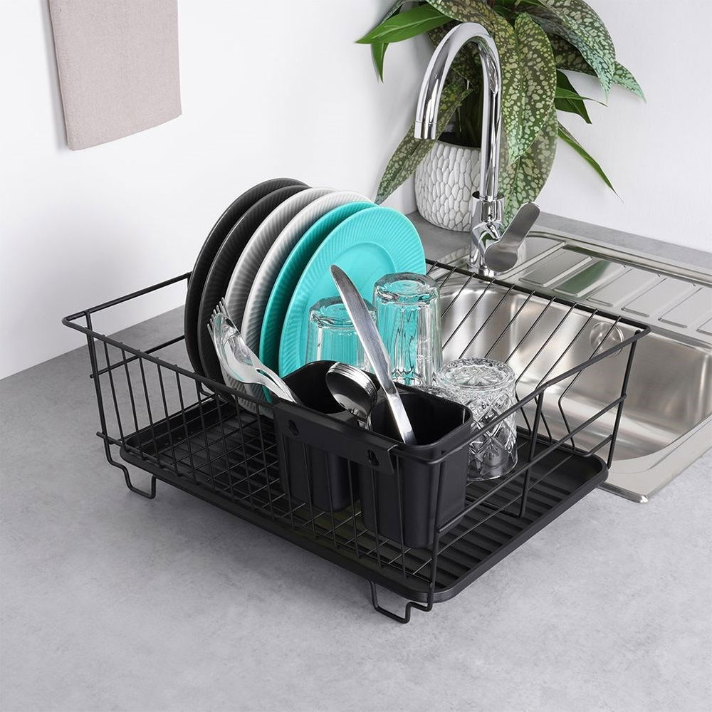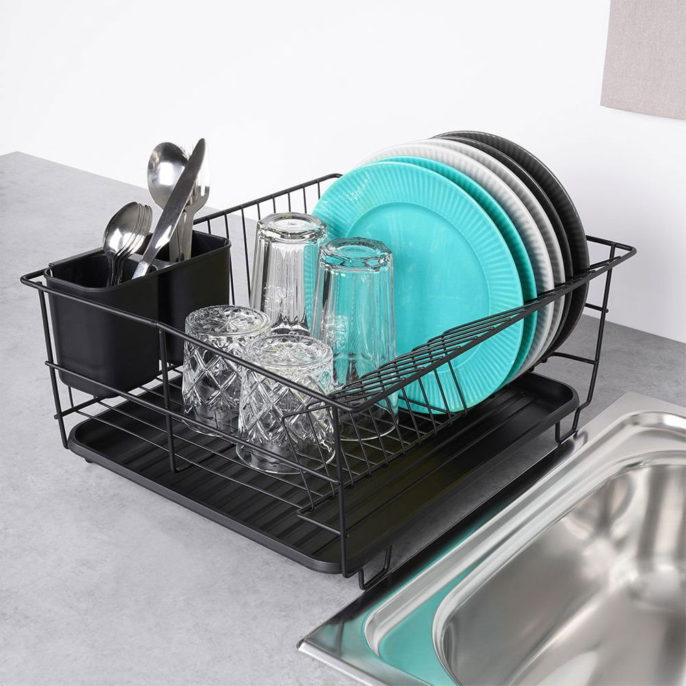 Ociekacz Suszarka na Naczynia Sztućce Talerze Stojąca Jednopoziomowa Czarna