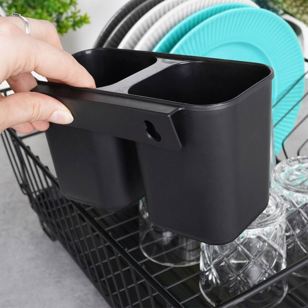 Kompaktowa suszarka na naczynia z miejscem na talerze oraz sztućce. Wykonana z wytrzymałych materiałów. Dzięki niej zapomnisz o nieuporządkowanych naczyniach i mokrych śladach na blacie szafek przy zlewie. Suszarka to niezbędny element wyposażenia kuchni. Wykonana w eleganckim stylu, a zarazem funkcjonalna. Łatwa w czyszczeniu. Posiada wyjmowaną tacę ociekową, dzięki czemu utrzymanie jej w czystości nie stanowi problemu.