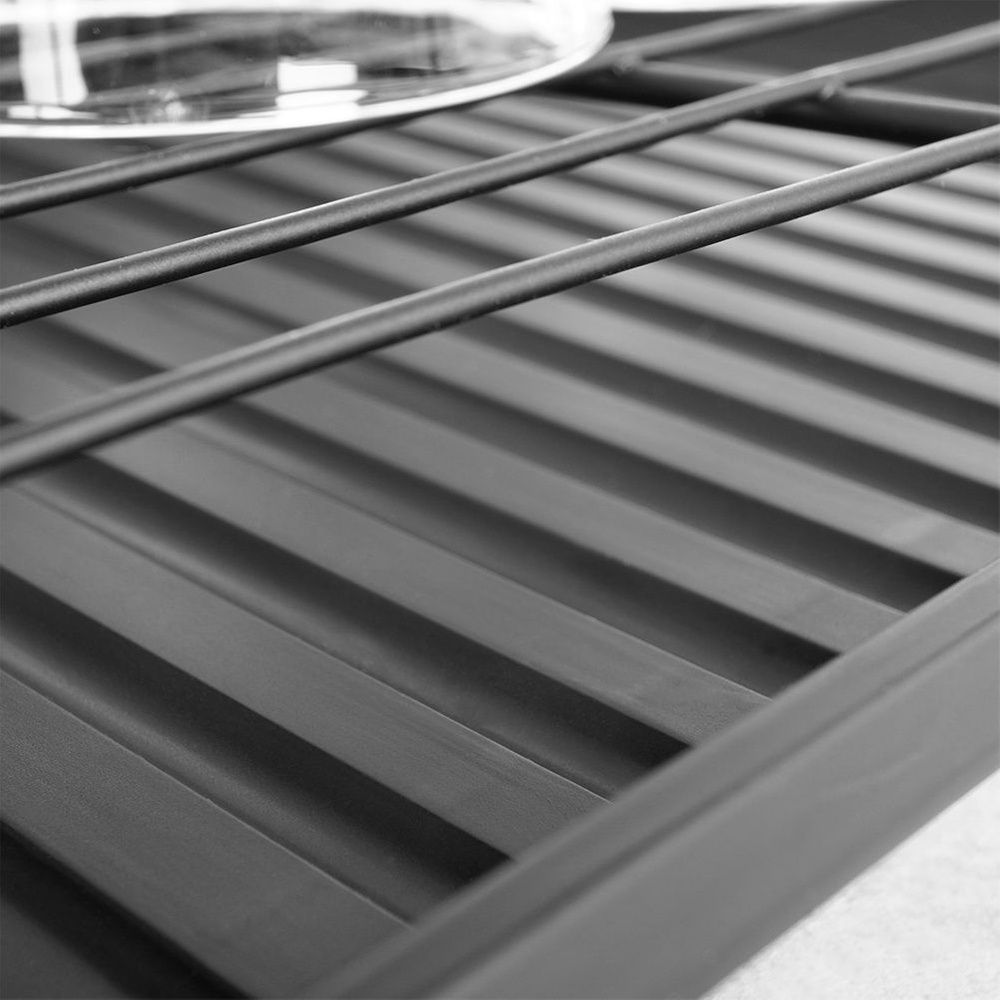 SOLIDNA - Suszarka wykonana z nierdzewnego metalu w matowym, czarnym kolorze. Wyposażona w wyjmowaną tacę i ociekacz na sztućce, które wykonane są z najwyższej jakości tworzywa w kolorze czarnym.