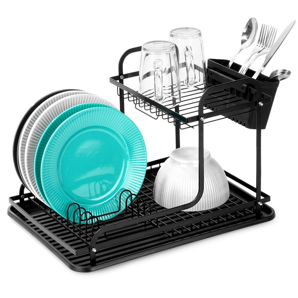 Ociekacz Suszarka na Naczynia Talerze Sztućce 2-piętrowa Poziomowa Czarna